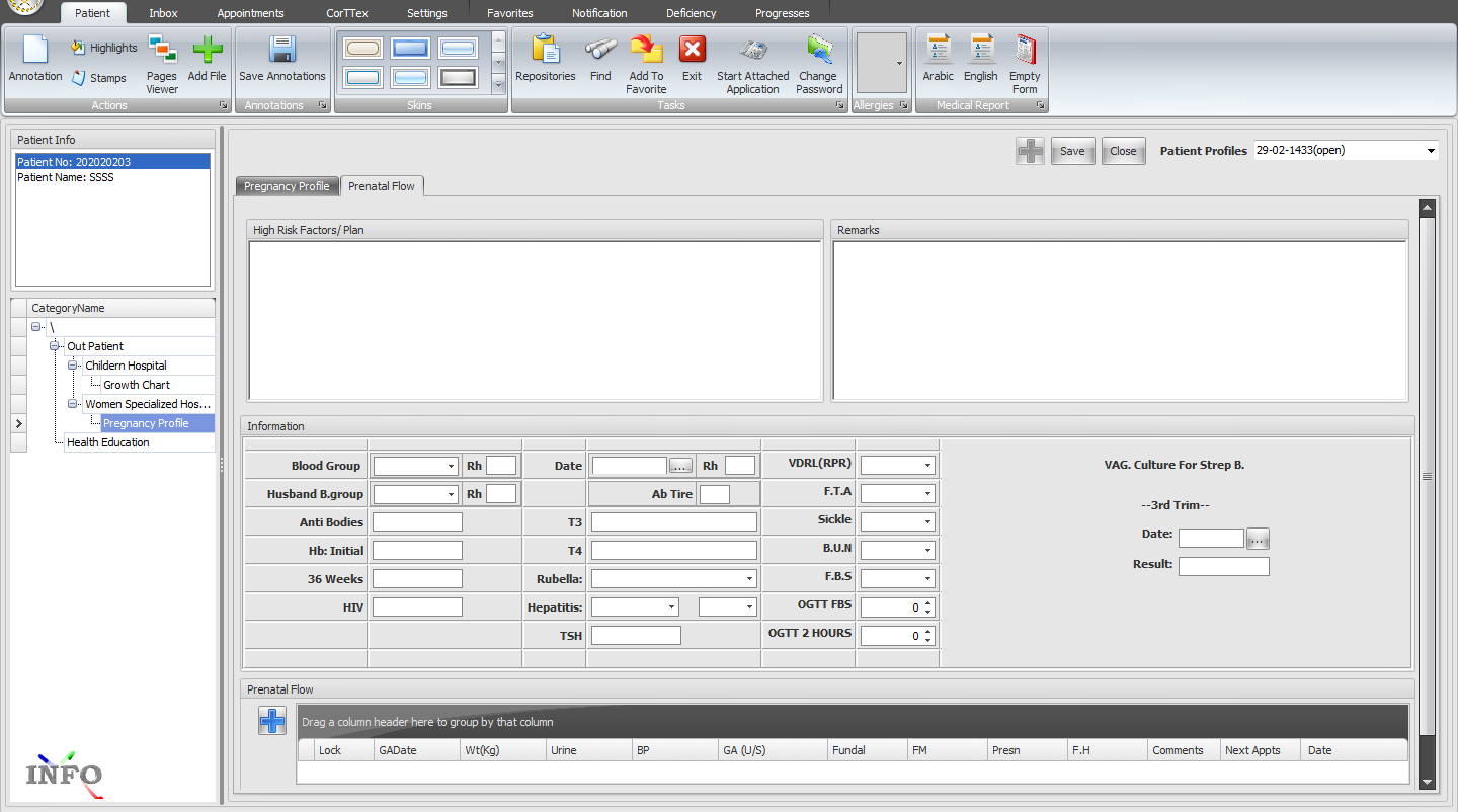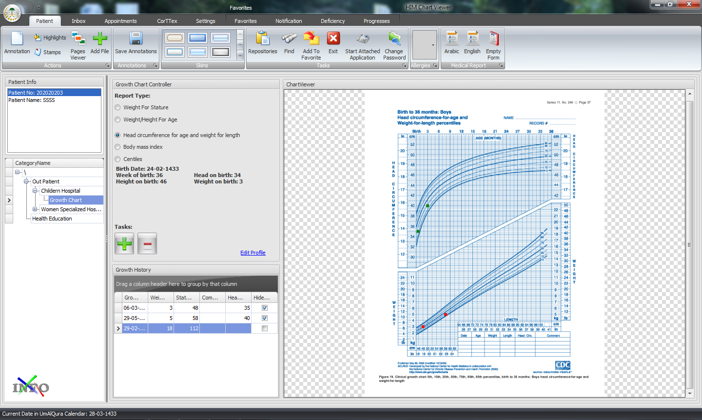 Des exemples de formulaires eHIM standard de MedLogic incluent les courbes de croissance, les profils de grossesse, les rapports médicaux, les notes d’évolution et la formation médicale.